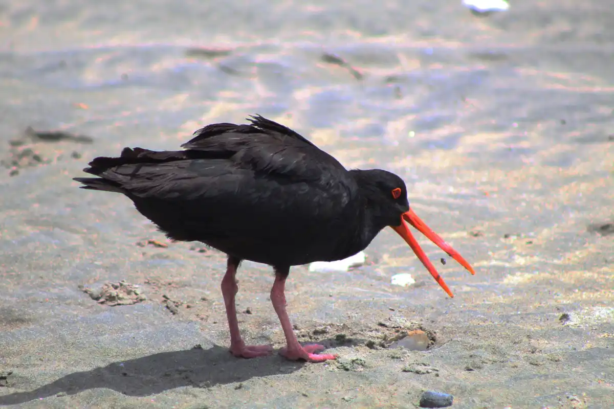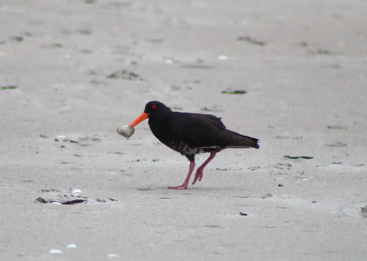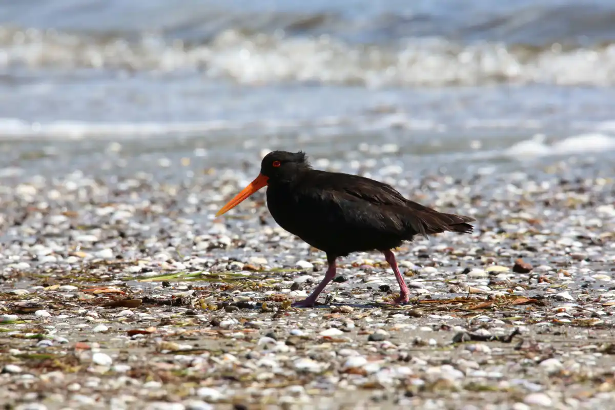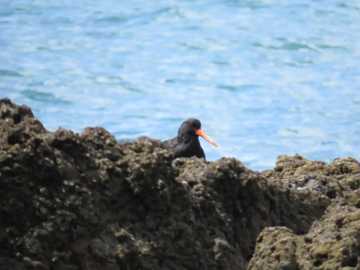 The variable oystercatcher is a stocky coastal bird with a long, bright orange bill, it is located on many quiet beaches such as Blackpool, Whakanewha and Anzac bay.