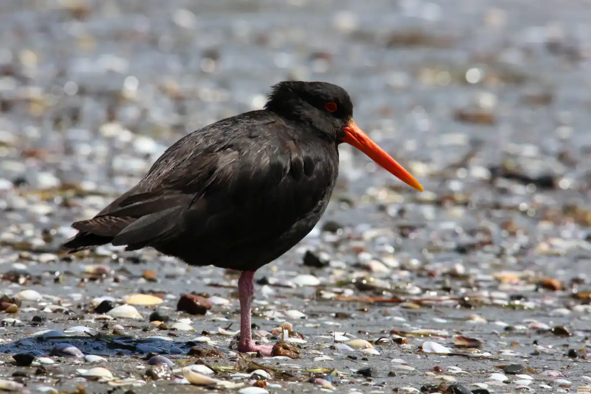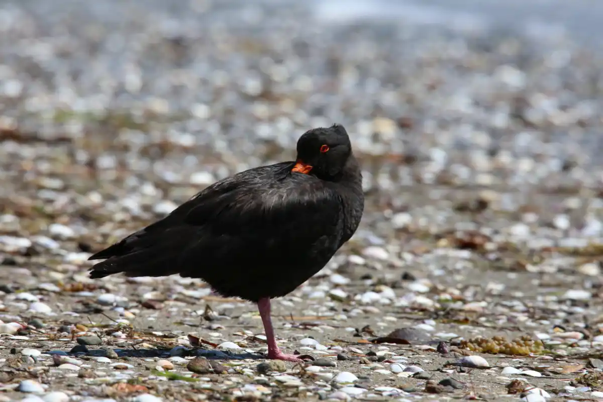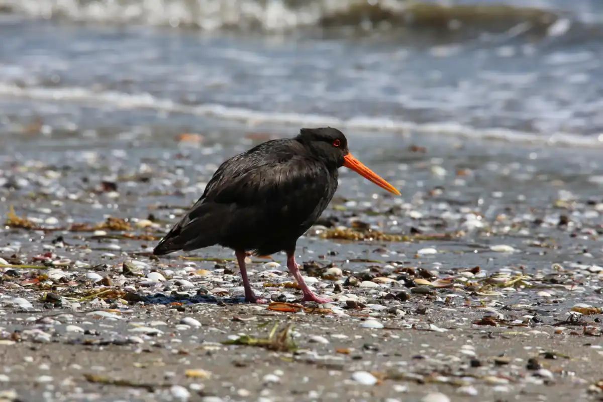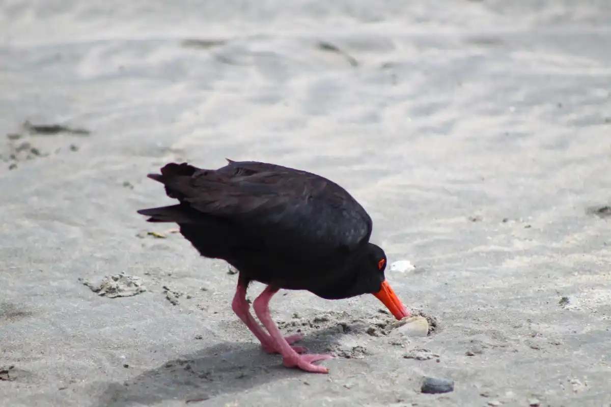 The variable oystercatcher is a stocky coastal bird with a long, bright orange bill, it is located on many quiet beaches such as Blackpool, Whakanewha and Anzac bay.