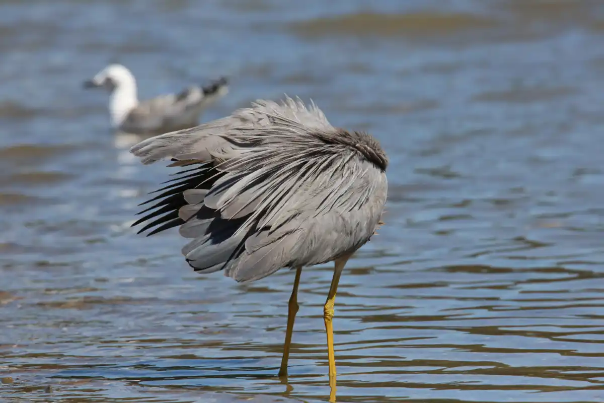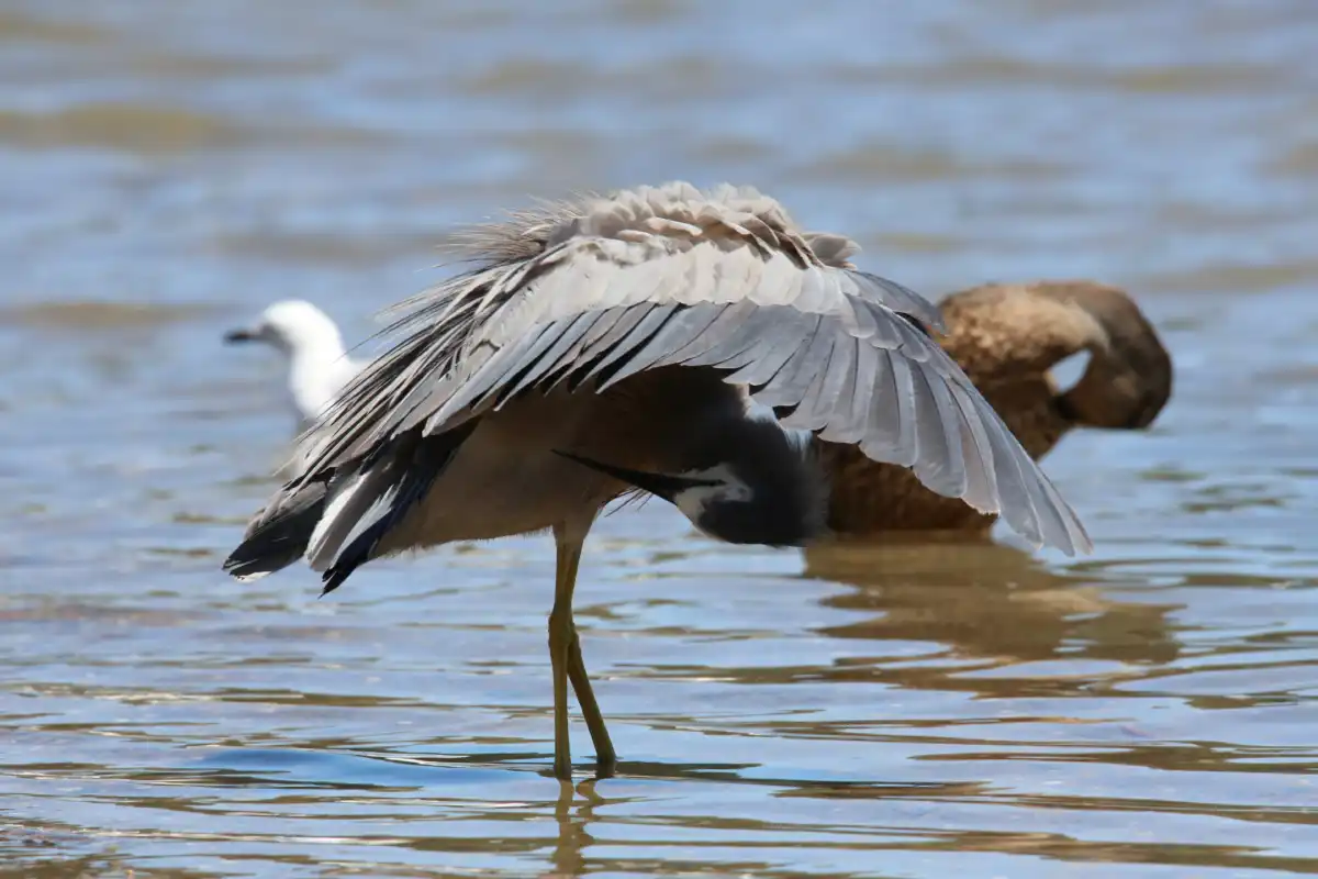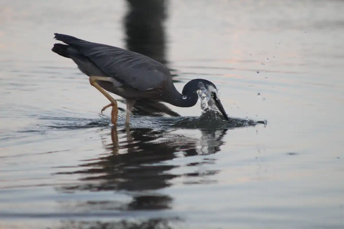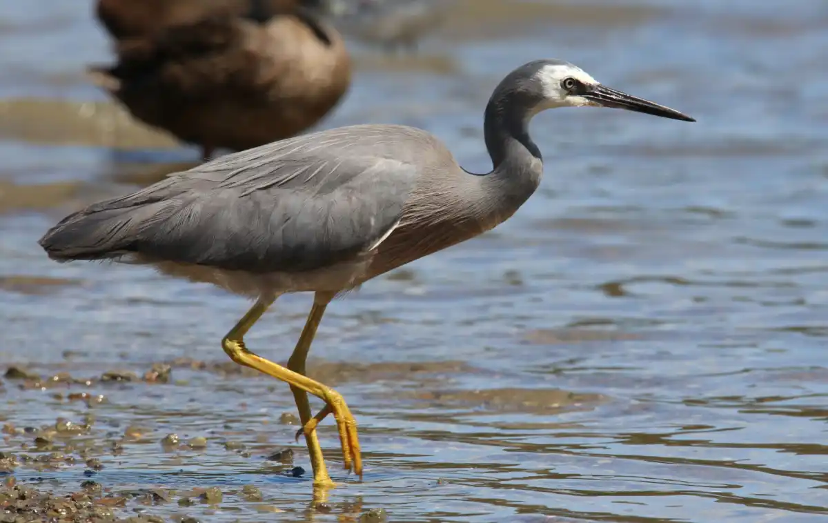 The white-faced heron is a tall, elegant, blue-grey bird usually spotted stalking prey. Locations found on Waiheke are Mangroves, Anzac bay and quiet beaches.