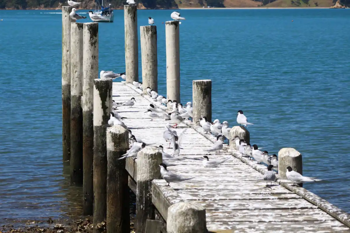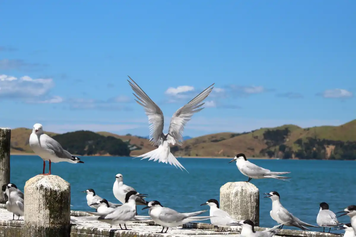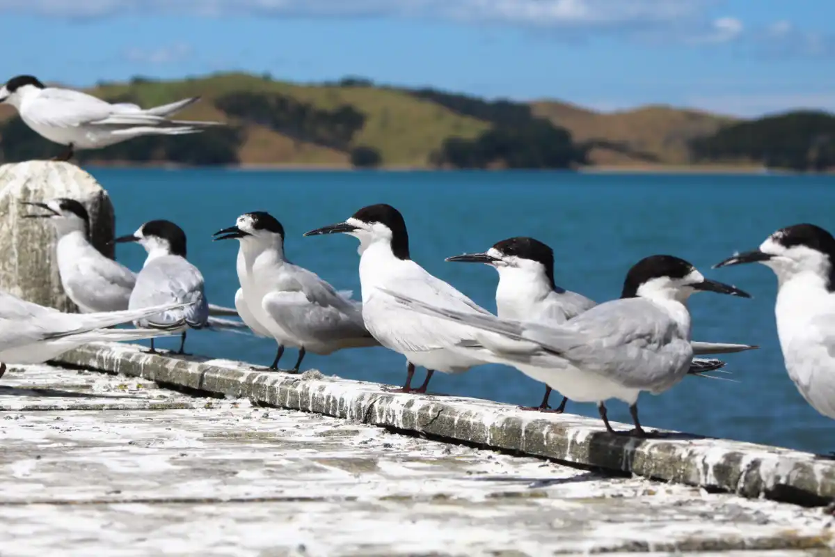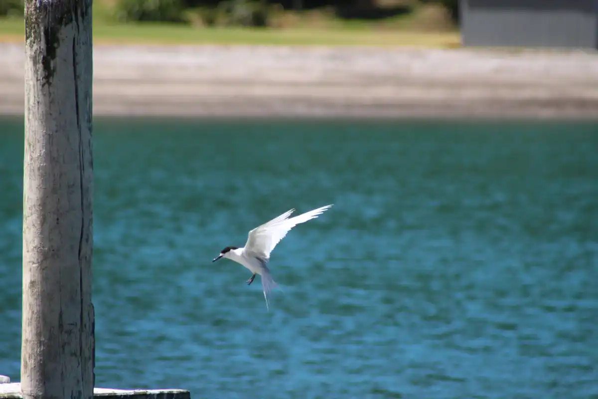 The white-fronted tern is a medium-sized, long-tailed sea tern commonly around New Zealand coasts. Spotted congregating on Waiheke wharfs such as Matiatia and Orapiu.